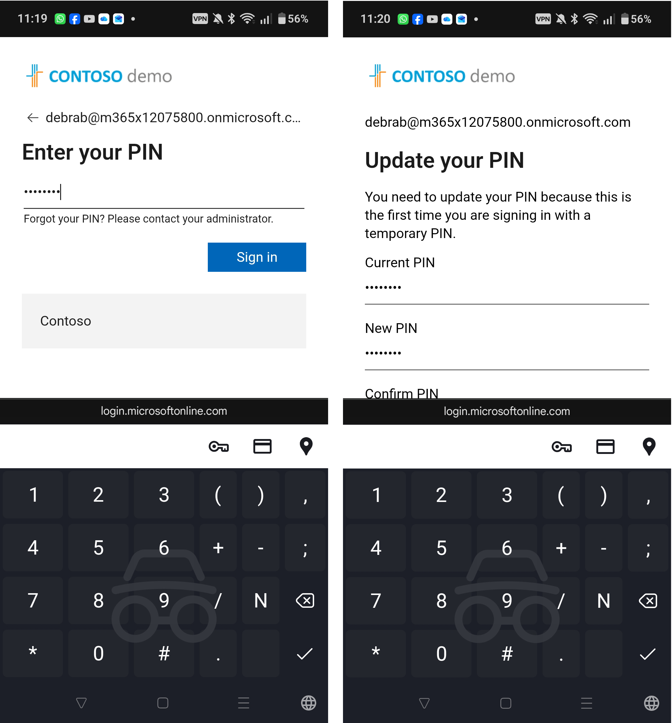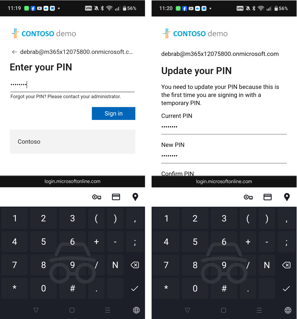Once you scan the QR code you need to enter your PIN. If this is the first login using that PIN you need to change it. Both of these are shown below: