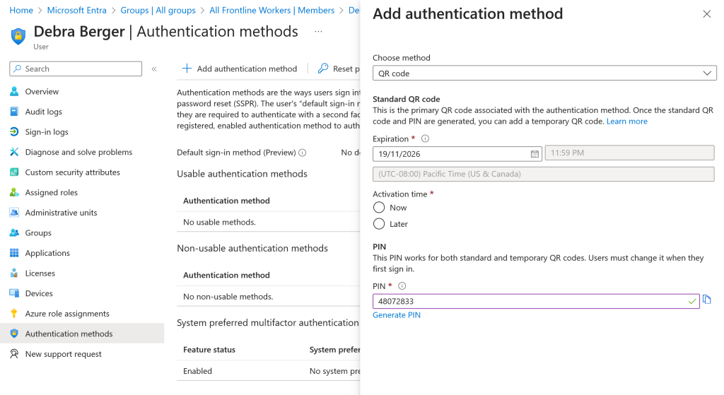Note that if you enable QR code authentication for a user, they need to sign-in with an existing authentication method before they can sign in with a QR code for the first time, or they see an Incorrect QR code error. This is listed as a Known Issue on the Entra ID documentation for QR code sign-in.