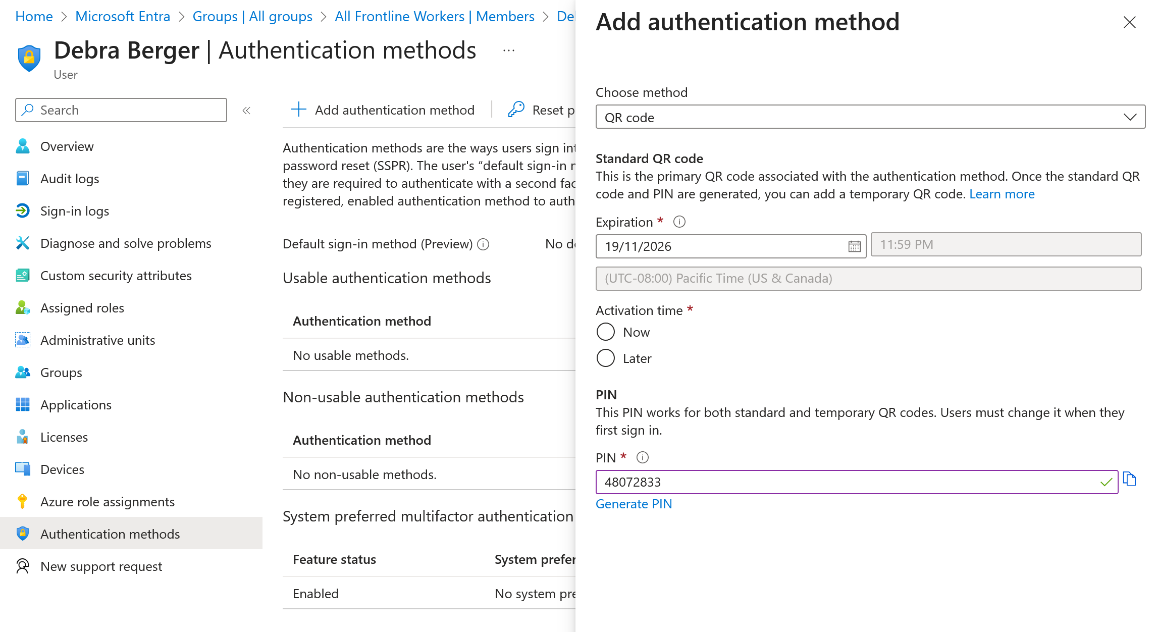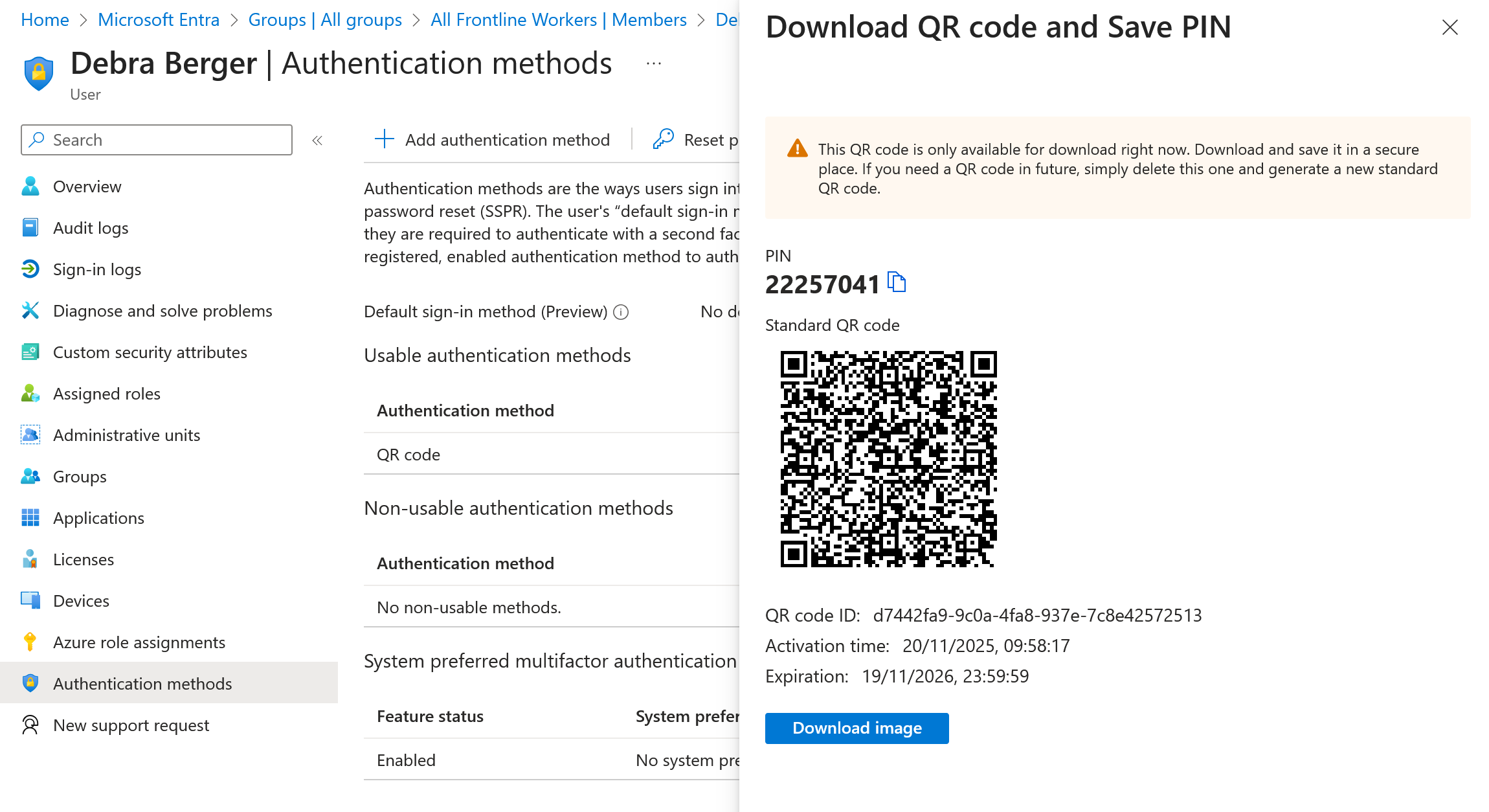 One of the questions asked was by a gentleman who had users on a factory floor and who wanted to sign them into their specific applications using a QR Code rather than username/password/MFA. I had not looked at this feature and some of the other settings that could work with it, so I thought I would look now and answer the question by way of a blog post. Here we will look at setting up QR Code sign in for our frontline workers (factory, shop floor etc) where we have a QR Code on the users identification badge and their own PIN for login.