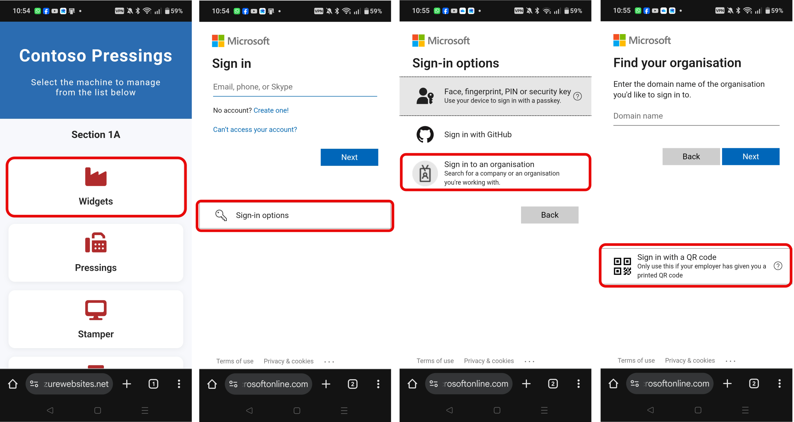 To scan the QR Code you follow these steps at the standard Entra ID login page.
