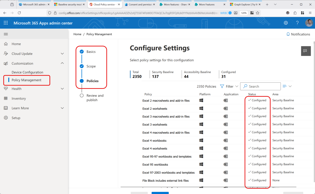 You can also turn on and off the policies in their own admin centers, but the whole point of this baseline is to make it easy to do centrally.