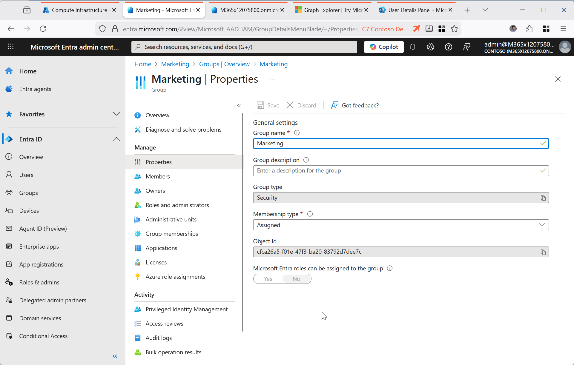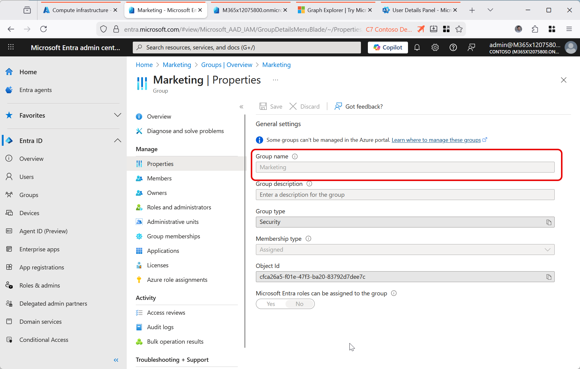 Try and update the group – this should fail at this point, because the group is not cloud managed: