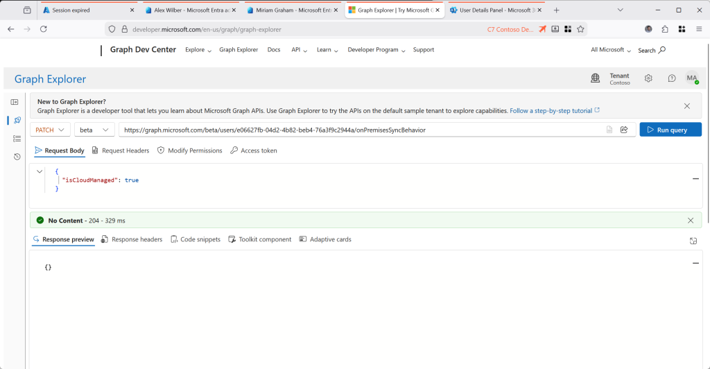 So now that IsExchangeCloudManaged is covered, lets look at the (easier) IsCloudManaged property. This is only easier in that once it is enabled all the identity attributes that we could not change in Exchange Online or Entra ID portals, shells etc. become manageable. The steps to do this are less easy, in that it is a change via Graph rather than PowerShell, but it will probably come to Entra PowerShell at some point. And finally, as its all about the users identity, anything that has an impact on provisioning these identities needs to be able to work with this change – for example, if you have a HR system updating objects in Active Directory you would only make this change once the HR system can update some objects directly in Entra ID as well.